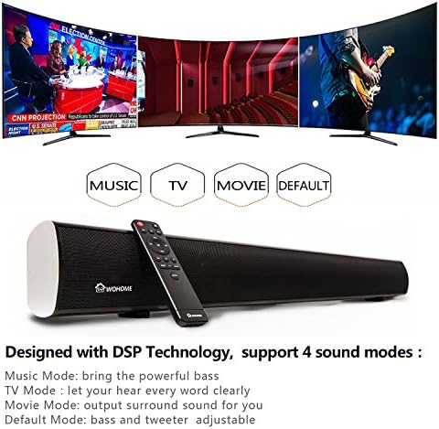 Wohome 2.1 Channel soundbar S11 designed with DSP technology, could bring crystal clear audio and surround sound, enhance your home theater system, support 4 sound modes: