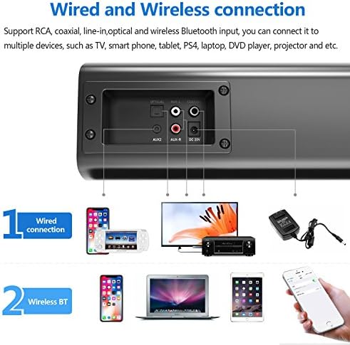 Multiple Inputs: enjoy wireless streaming music via the Bluetooth 4.0 from your smartphones, tablet, PC and other Bluetooth embed devices; or choose wired connection including RCA, AUX, coaxial and optical input, compatible with TVs, projectors, computers, smartphones, tablet, PCs, PS4, DVDs and other devices