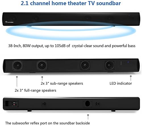 2.1 Channel Bluetooth Sound Bar, Wohome TV Soundbar with Built-in Subwoofer(Wireless Home Theater Sound Bars Speaker, 38-Inch, 80W, 4 Drivers, Remote Control, Wall Mountable, Model S11)