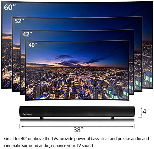 Loud Sound Bar 80W: except dual subwoofers, also built-in 2x 3-inch full range speaker, total 4 Drivers, output 105dB surround sound in your room, upgrade your TV audio experience, 38-inch great fit for 40″ or above class TVs, compatible with Samsung,Vizio, TCL, LG, Sharp, Philips, Sony Element and almost all TVs