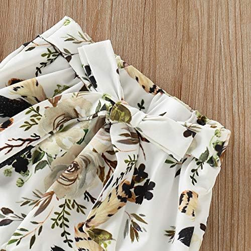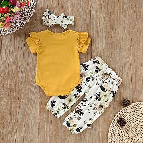 Ruffled layered shoulder,solid bodysuit,elastic waist bow floral print pants,cute spring autumn outfits