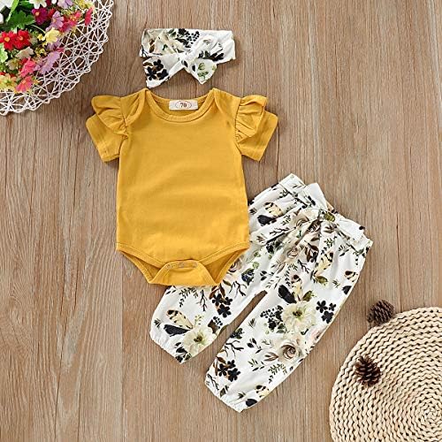 Design: Ruffled layered shoulder, long sleeve or short sleeve,floral pants with elastic waist and cute bow, flower headband.More fashion for little baby