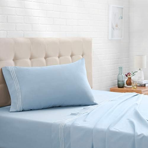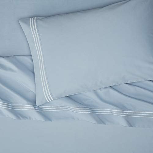 Flat sheet and pillowcases feature 4-inch hems with 3 bands of stitching