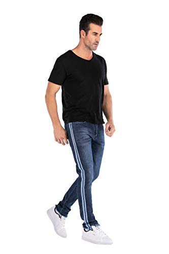 Aobao Men’s Comfort Stretch Slim-Fit Side Color Ribbon Jeans