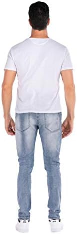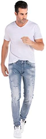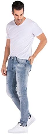 Features: Small-legged slim pants, high-elastic fabric, the front of the worn out trendy fashion, the back pocket stitching, bleached and a little worn