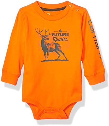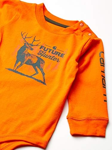 Shoulder placket and crotch snaps. Carhartt woven label on left sleeve