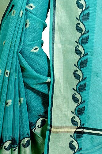 Saree Length: 5.4 m | Blousepiece Length: 80cm (Unstitched Blousepiece is attached to one end of the Saree.The model is wearing a blouse from our stylist’s collection).
