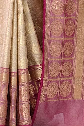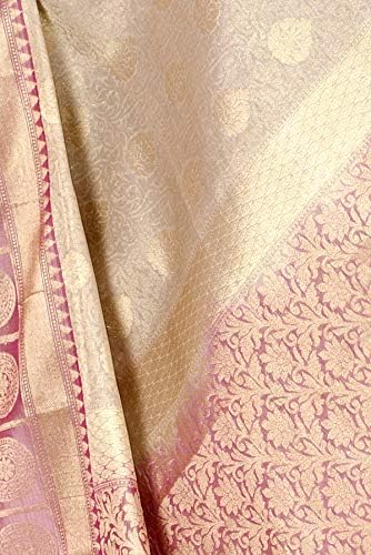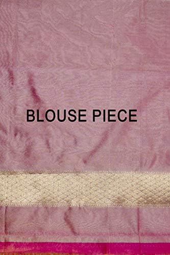 Woven plane blouse with Gold Zari border gives you a perfect contemporary look.This is a completely unforgettable Banarasi clasic, you can sew the piece of this blouse according to your own design style and shape. A blouse piece of 80 cm is attached on one end of the saree.