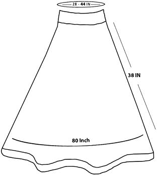 Waist: 26 – 44 inches, Flair (Ghera) from Bottom: 80 inches, Length: 38 inches, Hip Round: 46 inches.