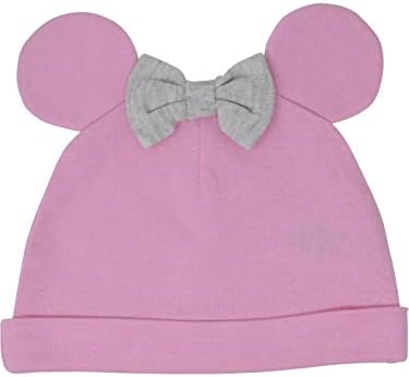 Cozy hat with dimensional Minnie ears and satin bow; 2-ply bib with snap closure