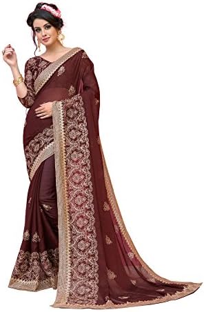 Embroidery Work Saree for women with blouse piece
