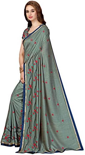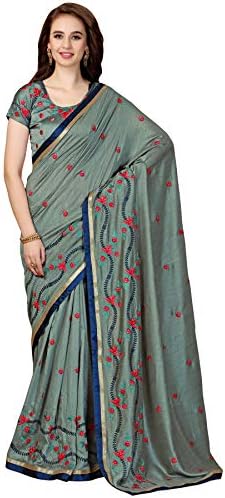 Glory Sarees Women’s Vichitra Silk Saree Grey Free Size