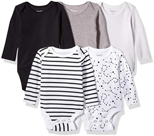 Hanes Ultimate Flexy 5 Pack Long Sleeve Bodysuits were designed with baby in mind. They are super soft, flexible, and are available in 4 simple sizes to fit baby longer.