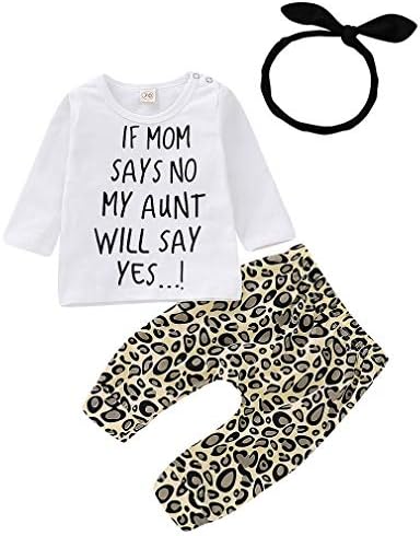 Inflant Baby Girl Leopard Outfit Long Sleeve My Aunt Says Yes Shirts Tops Long Pants Heaband Clothes