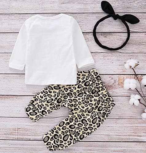 3PCS Newborn Baby Girls Autumn Clothes: Long Sleeve White Crewneck Letters Print Tops + Leopard Long Pants