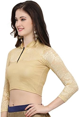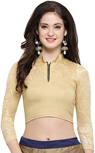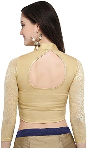 Janasya Indian Tunic Tops Readymade Cotton Lycra Saree Blouse for Women (BL034-150GOLD)