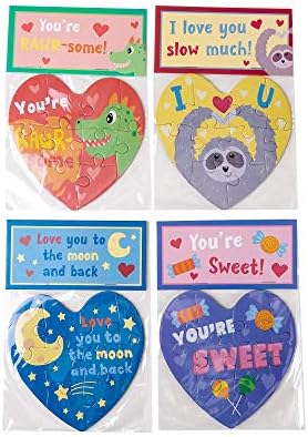 Our Heart Jigsaw Puzzle with Valentine’s Day Gift Cards includes 28 jigsaws puzzles and 28 headers that come in 4 designs.