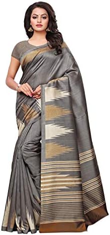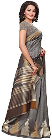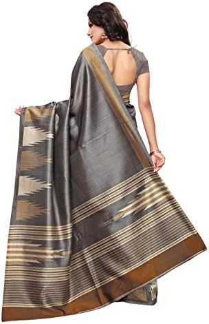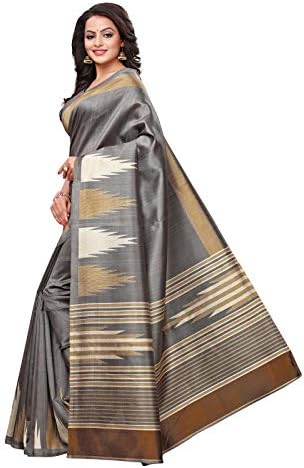 Kanchnar Women’s Grey and Multi Poly Silk Printed Saree