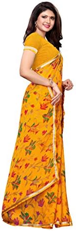 KANCHNAR Women’s Red Chiffon Printed Saree with Unstitched Blouse
