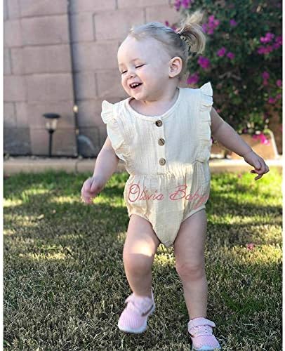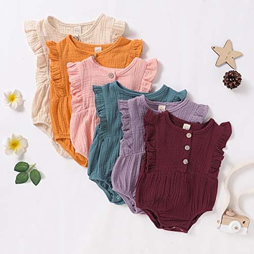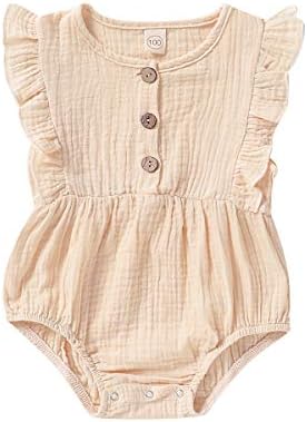 Newborn Baby Girl Romper Ruffle Long Sleeve Bodysuit Cotton Linen One Piece Jumpsuit Infant Fall Outfits Clothes