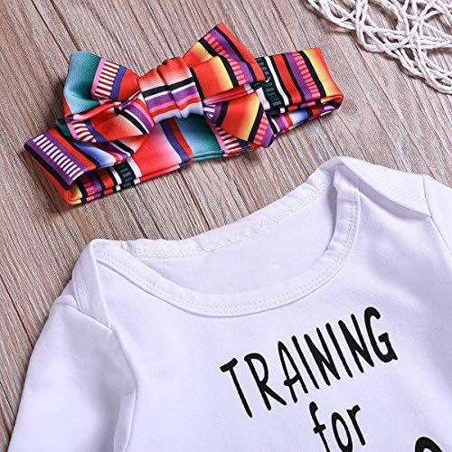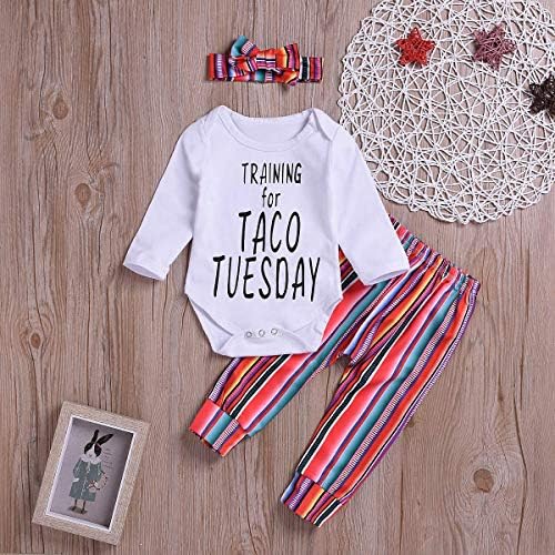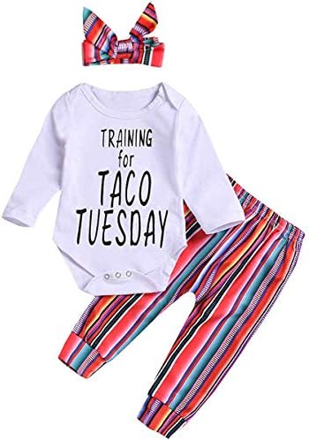 Interesting “TRAINING for TACO TUESDAY” letter print, rainbow bow headband, colorful striped pants, this special design will definitely make your baby more attractive