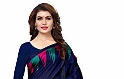 KANCHNAR Women’s Blue Art Silk Printed Saree with Unstitched Blouse