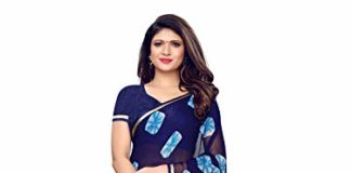 KANCHNAR Women’s Orange Printed Bandhani Chiffon Saree with Unstitched Blouse