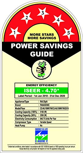 Energy Rating : 5 Star, Annual Energy Consumption : 840.75 kWh, ISEER Value : 4.7