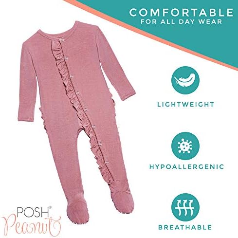 POSH PEANUT SIGNATURE ONE PIECE ROMPER – Not your basic baby romper, our signature designs will make your heart melt. Our elegant colors pop right off of the rompers into the room! Ruffle detailed bodice in long sleeve. Buttery, premium and soft viscose from bamboo in vibrant rose print design. Stretchy bamboo knit for all-day wear. Snap closure for easy diaper change. It’s the all in one posh comfort wear! Makes a great Christmas gift, stocking stuffer, secret santa or white elephant gift.