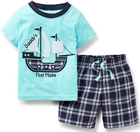 Car, truck, airplane, dinosaurs, toys and animal designs on short sets to your child’s taste