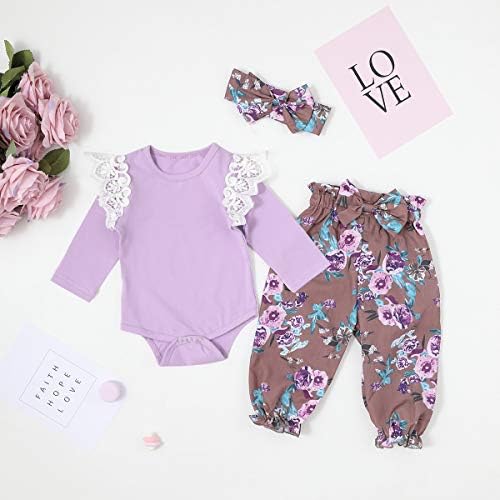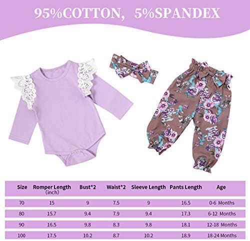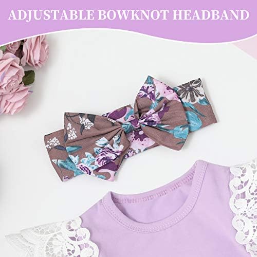 Features: Cute long sleeve jumpsuit; Elastic bowknot waist pants; Strong snaps keep up with wear, wash, repeat; Adjustable allover floral headbands or hats