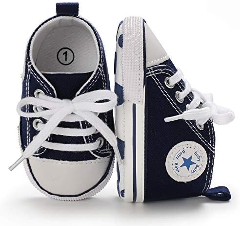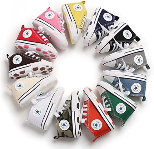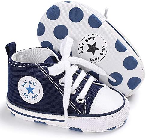 【FASHION】– Classic star high top ankle style,Fashion and Casual Lace up sneakers,it’s popular with your child.Cute style suit for indoor walking,crawling,playing ect.Best shower birthday gift for newborn.