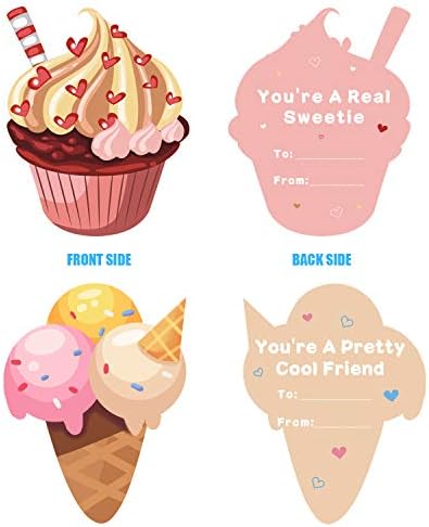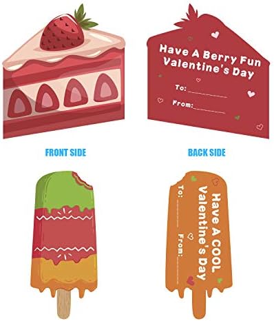 💕 Valentines feature 5 styles of lovely cards (cupcake, piece of cake, ice cream, popsicle, lollipop) with a simple sweet message and “To” & “From” spaces to write down names.