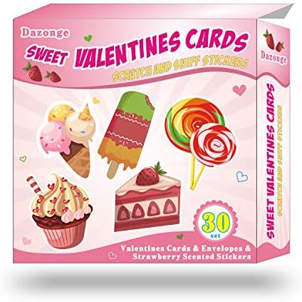 💕 Each pack contains 30 cute valentine cards, 30 scratch & sniff stickers and 30 decent-sized envelopes. What a cute classroom set of valentines!