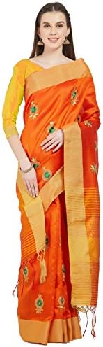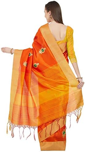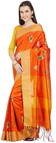 Saree Color :- * Orange* , Blouse Color :- *Yellow *